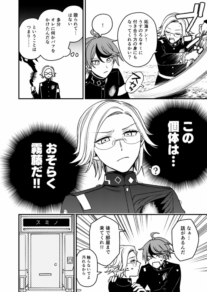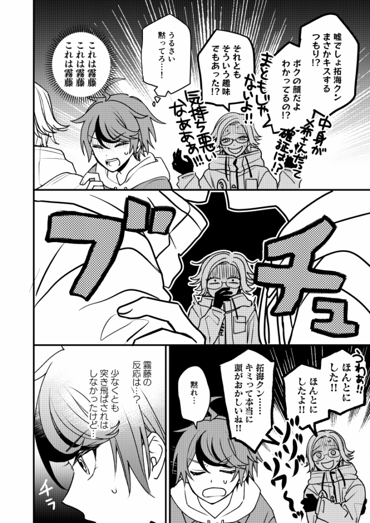 ※拓→希前提、ギャグですが全員が蒼月に見えたままの拓海視点で「おそらく希と思わしき個体」にキスを試みる話です