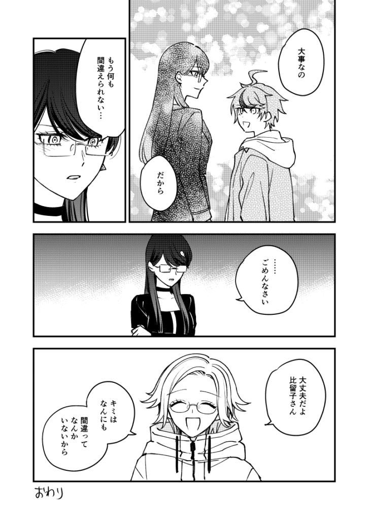 「ハッピーエンド」のために切り捨てたものたちにちょっとした罪悪感をおぼえている雫原がいたらかわいい!という気持ちで描いた