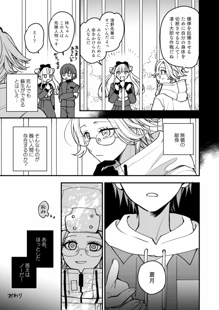 洗脳されてがっかりする衛人いたら萌えじゃない?と思って描いた青春編は一周目の焼き直しとしての側面も強いけど、みんなのヒーローとして振る舞う拓海くんへの反動(あと、友情努力勝利でハッピーエンドになるストーリー構造への反発)もあるのかなとおもっている(ヒロイックなキミをボクが殺すみたいなセリフもあったよね)